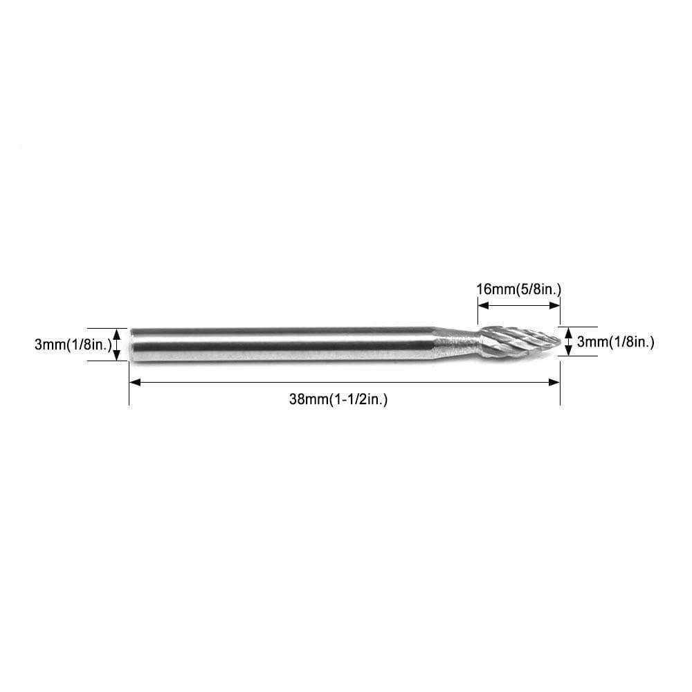 Carbide Cutter Flame Shape H0316(SH-41), 3mm(1/8in.) Shank - FindBuyTool
