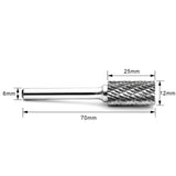 Carbide Burr B1225M06 Cylinderical End Cut OMNI Range Head D 12 x 25mm, 6mm Shank, 70mm Full Length - FindBuyTool