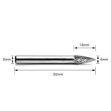 Carbide Burr G0618M06 Point Tree Shape OMNI Range Head D 6 x 18mm, 6mm Shank, 50mm Full Length - FindBuyTool