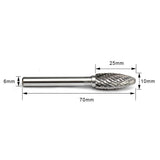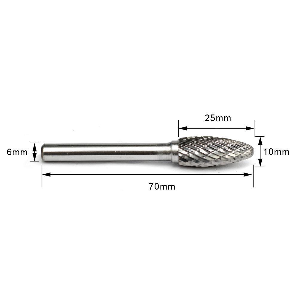 Carbide Burr H1025M06 Flame Shape OMNI Range Head D 10 x 25mm, 6mm Shank, 70mm Full Length - FindBuyTool
