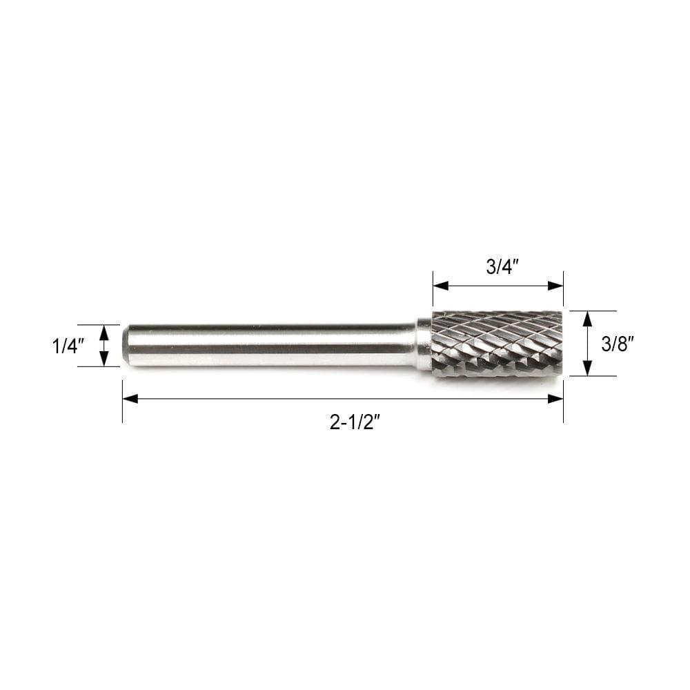 Carbide Burr SA-3L4 Cylinderical Plain End OMNI Range Head D 3/8 x 3/4L, 1/4 Shank, 4-1/3 Inch Full Length - 1 Pc is backordered and will ship as soon as it is back in stock.