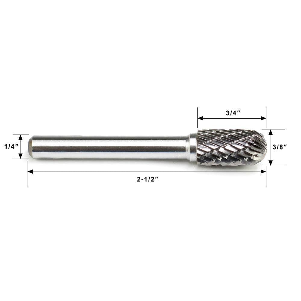 Carbide Burr SC-3 Cylinderical Ball Nose OMNI Range Head D 3/8 x 3/4L, 1/4 Shank, 2-1/2 Inch Full Length
