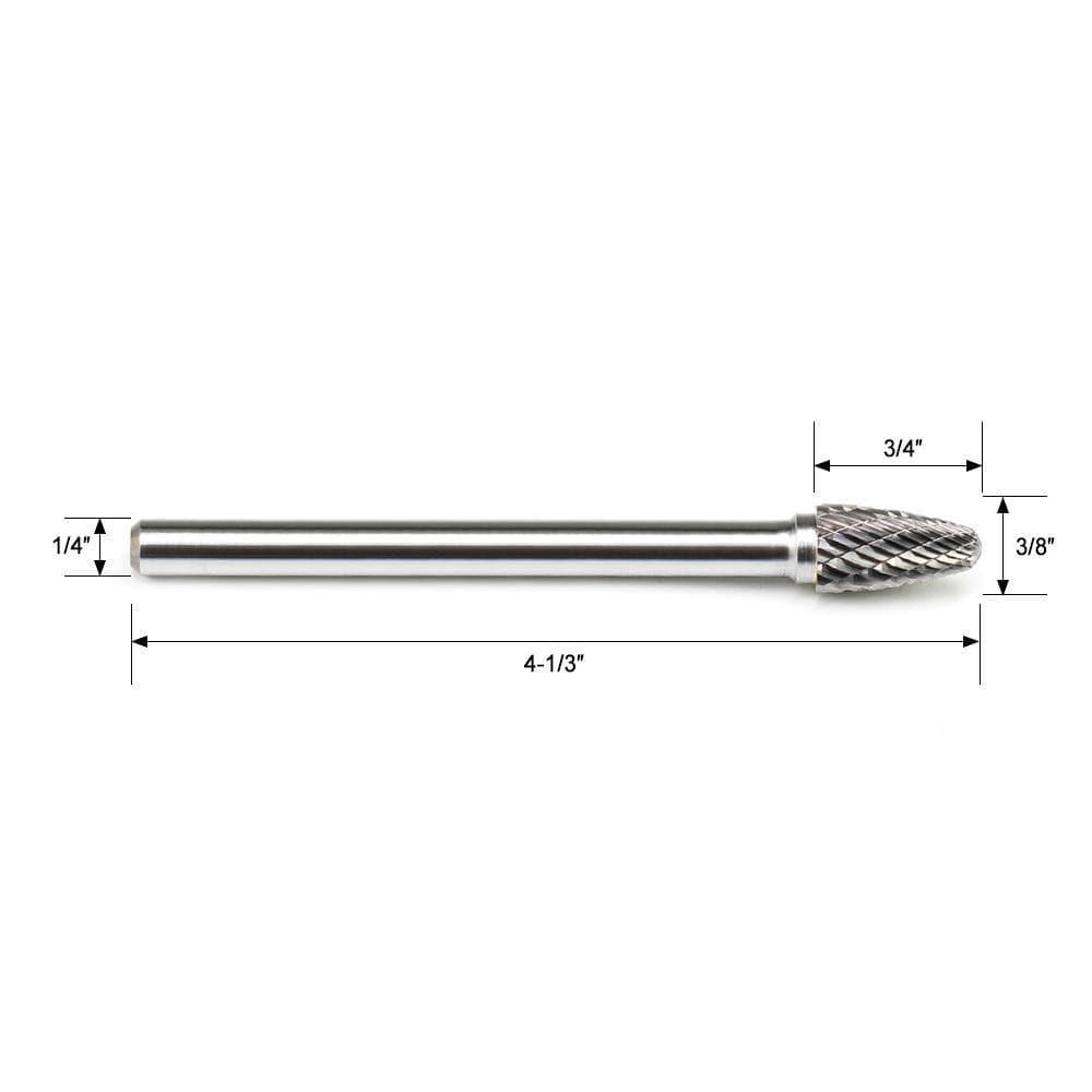 Carbide Burr SF-3L4 Tree Radius End OMNI Range Head D 3/8 x 3/4L, 1/4 Shank, 4-1/3 Inch Full Length - FindBuyTool