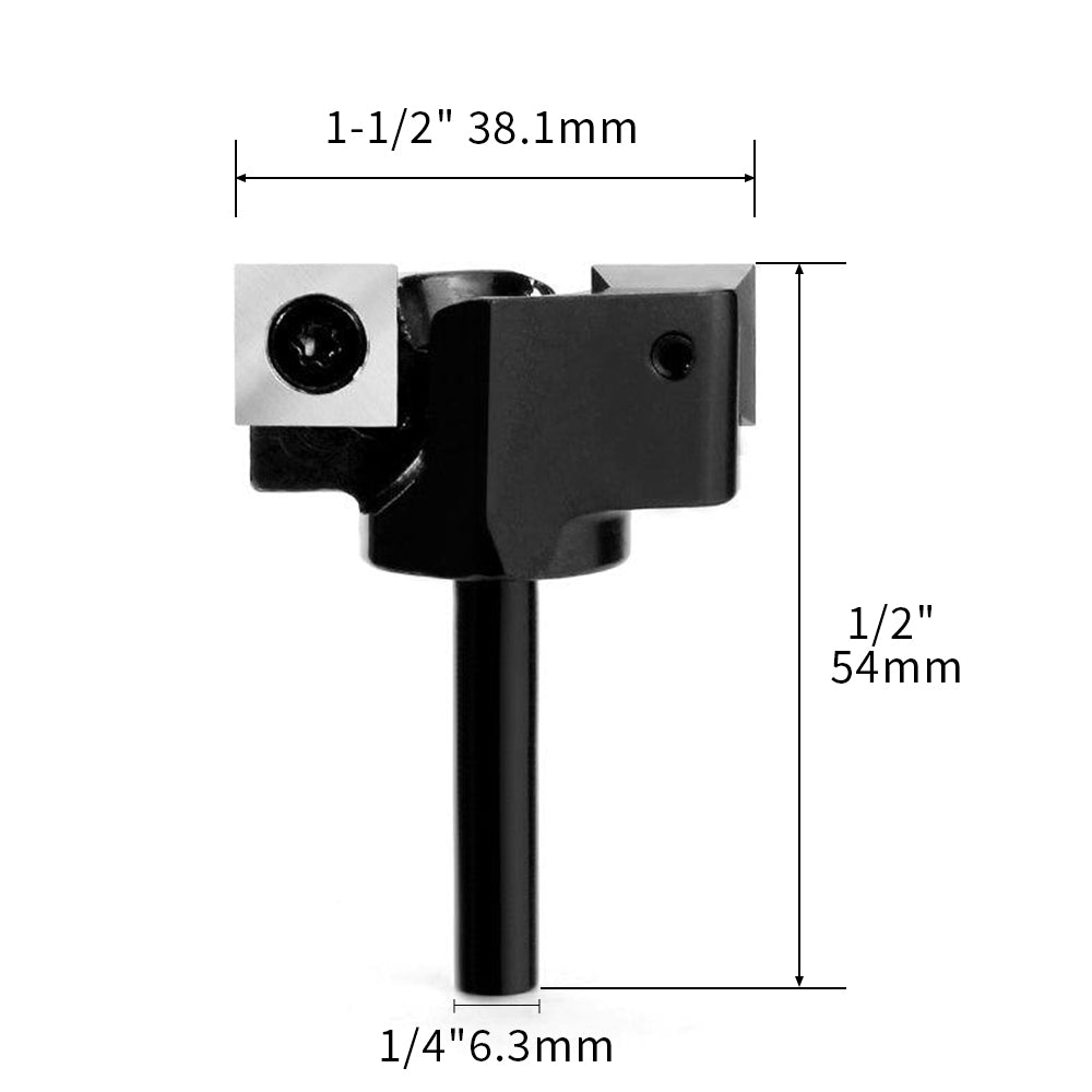 The slab flattening router bit with 2 wings is ideal for surfacing, wood flattening, and slotting. The 4 edges of the carbide inserts can be used, which adds more cost-effectiveness to this router bit. An anti-kickback design and stable knife body produce efficient cutting performance.