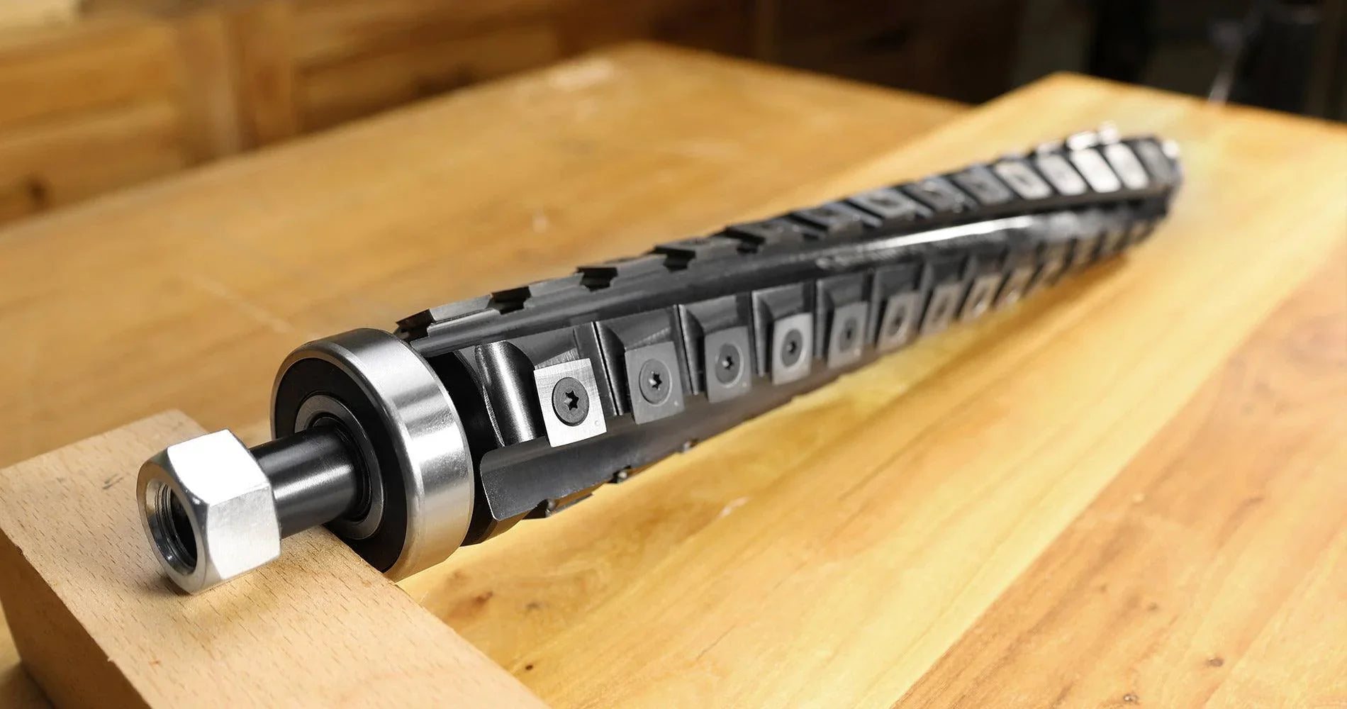 This head handles everything from soft pine to dense exotics like ipe. The shear cutting action deals with reversing grain and figured maple with significantly less tear-out than straight blades.