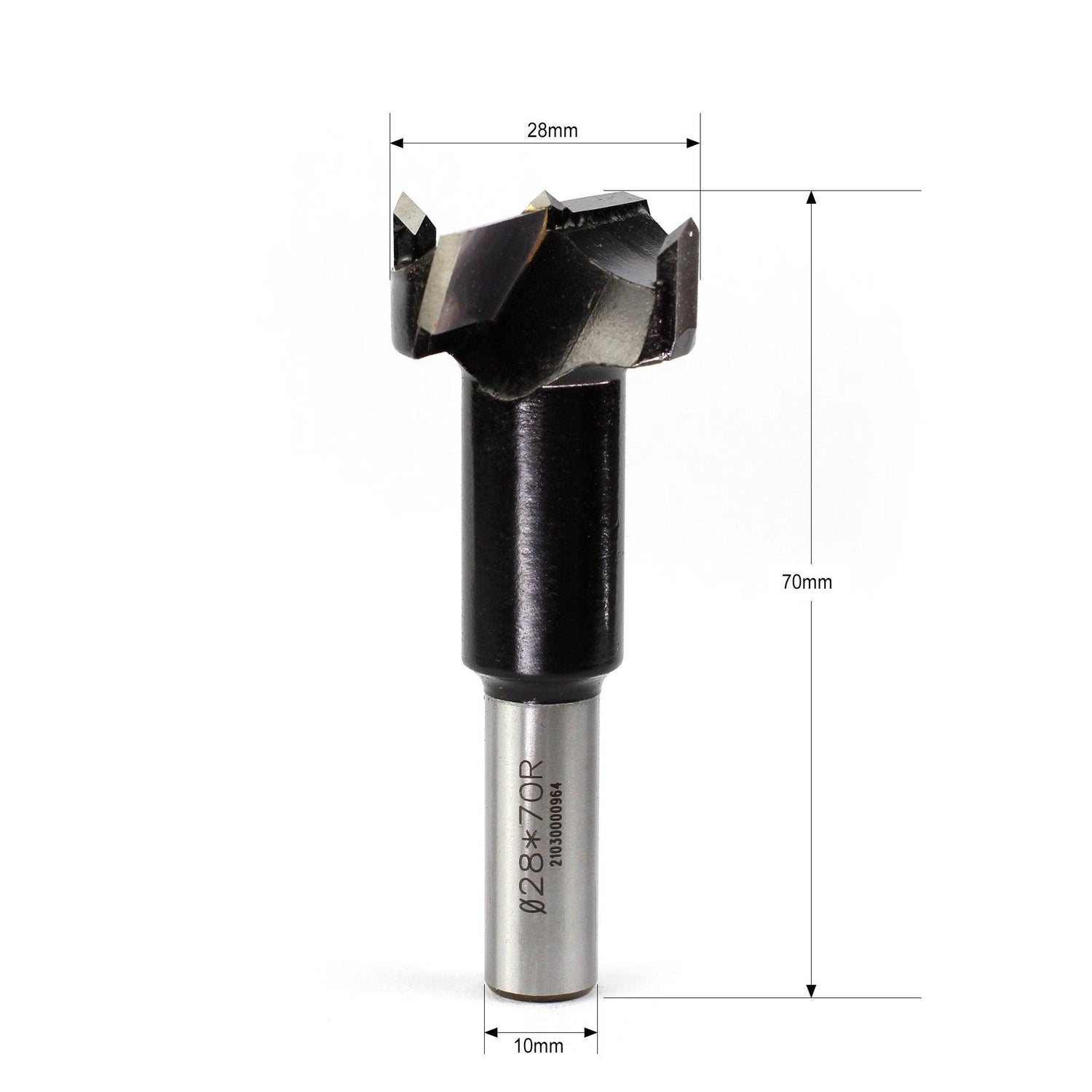 Compre una bisagra tct bit biting 28 mm de diámetro. Mano derecha para perforar agujeros lisos y de fondo plano. FindBuyTool Bisage Cutter Simuts superpuestos y agujeros en ángulo en la madera dimensional o MDF con acabado más limpio. Esta broca aburrida de Forstner se puede usar tanto en el taladro portátil como en la prensa de perforación.