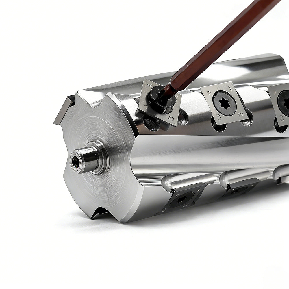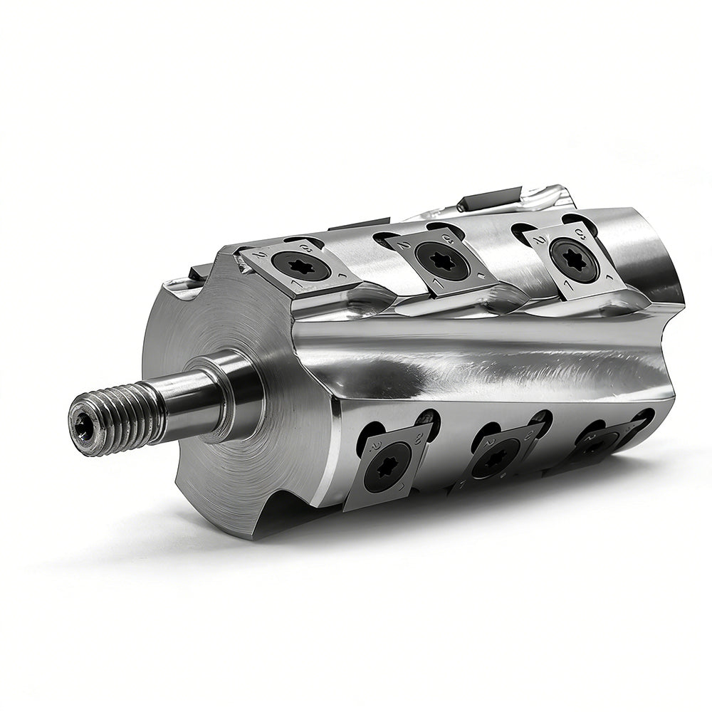 Este cabezal de corte helicoidal de alta resistencia cuenta con cuatro alas de corte y un total de 12 insertos de carburo, lo que ofrece una calidad de acabado perfecta. Nuestros cabezales de corte en espiral se fabrican con altos estándares utilizando máquinas CNC de 5 husillos, lo que garantiza una excelente coaxialidad. Las cuchillas con inserto de carburo de tungsteno están hechas 100% de materia prima, por lo que, en comparación con las cuchillas HSS, le ofrecemos
