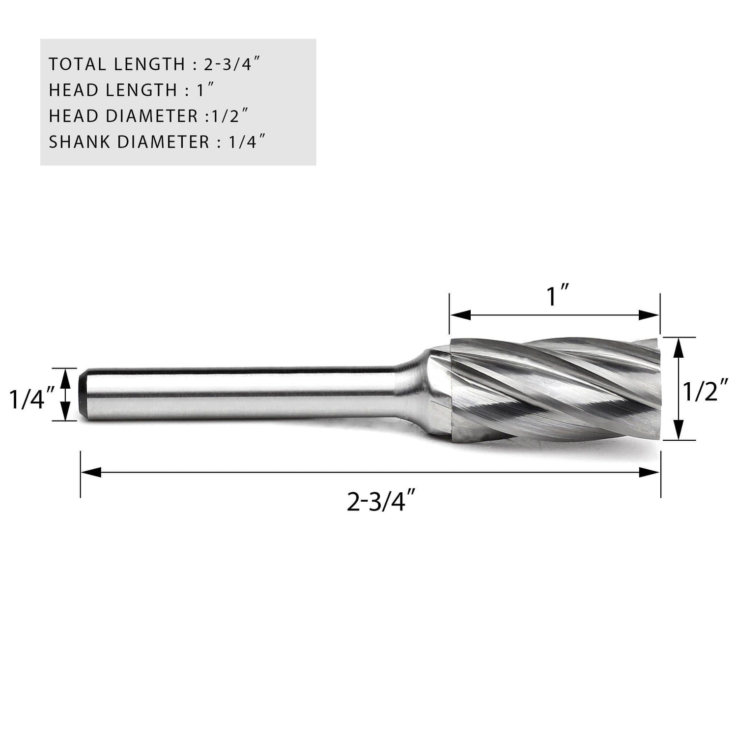 Carbure Burr SA5-NF Plan cylindrerical End Range de l'alumine Tête D 1/2 x 1L, 1/4 SHANK, 2-3 / 4 pouces Full Longueur