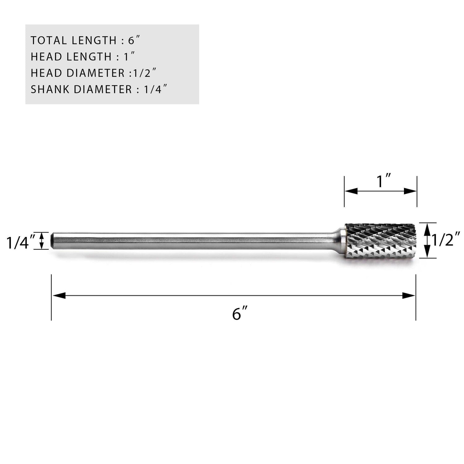 Carbure Burr SA-5L6 Plan cylindrerical End Omni Range Head D 1/2 x 1L, 1/4 tige, 6 pouces entière longueur