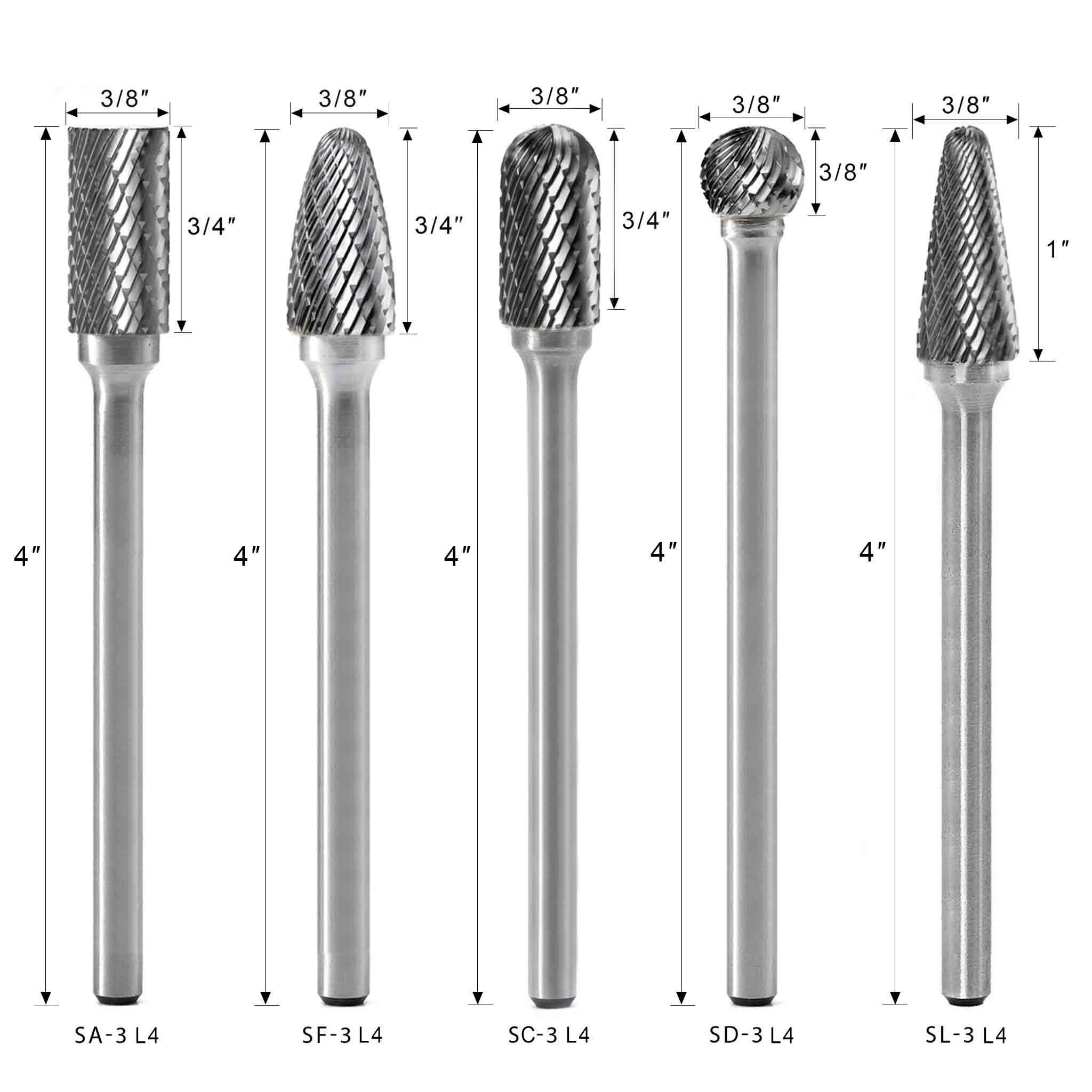 Shop for FindBuyTool Carbide Burrs Set OMNI Range 4-1/3 Inch Long 1/4 Shank, 5Pcs. This multipurpose die grinder bits set is designed to cut steel, cast iron, Nickel-Based Alloys and stainless steel(INOX). FindBuyTool multifunction long shank cutting burrs set 5Pcs includes rotary burrs of SA-3L4, SC-3L4, SD-3L4, SF-3L4, SL-3L4 .