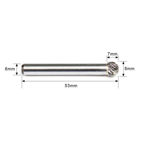 Carbide Burr D0807M06 Ball Shape OMNI Range Head D 8 x 7mm, 6mm Shank, 53mm Full Length - FindBuyTool