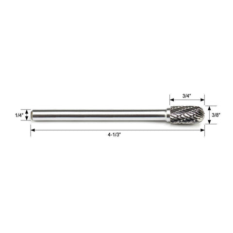 Carbide Burr SC-3L4 Cylinderical Ball Nose OMNI Range Head D 3/8 x 3/4L, 1/4 Shank, 4-1/3 Inch Full Length