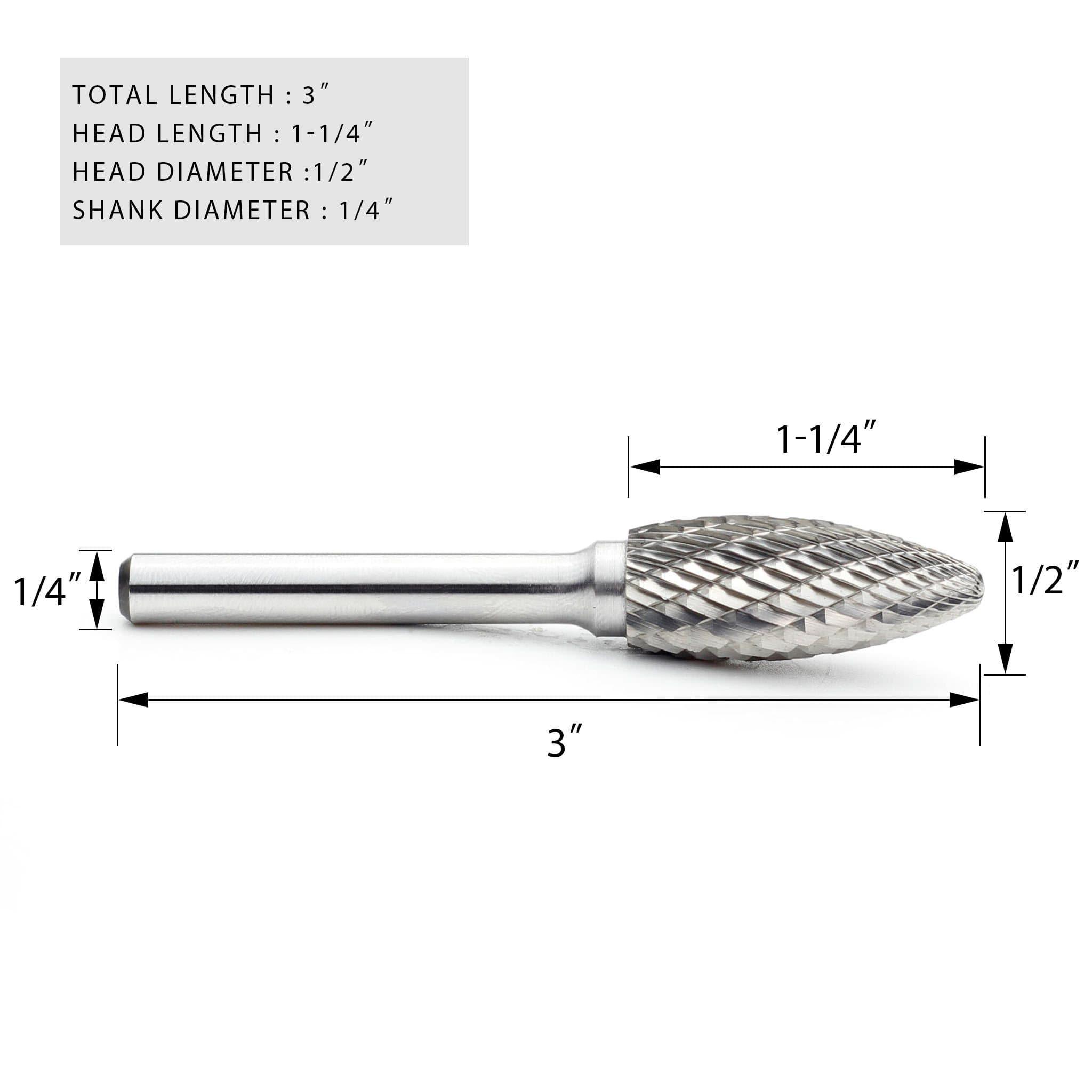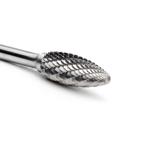 Carbide Burr SH-5 Flame Shape OMNI Range Head D 1/2 x 1-1/4L ,1/4 Shank, 3 Inch Full Length