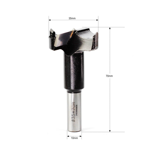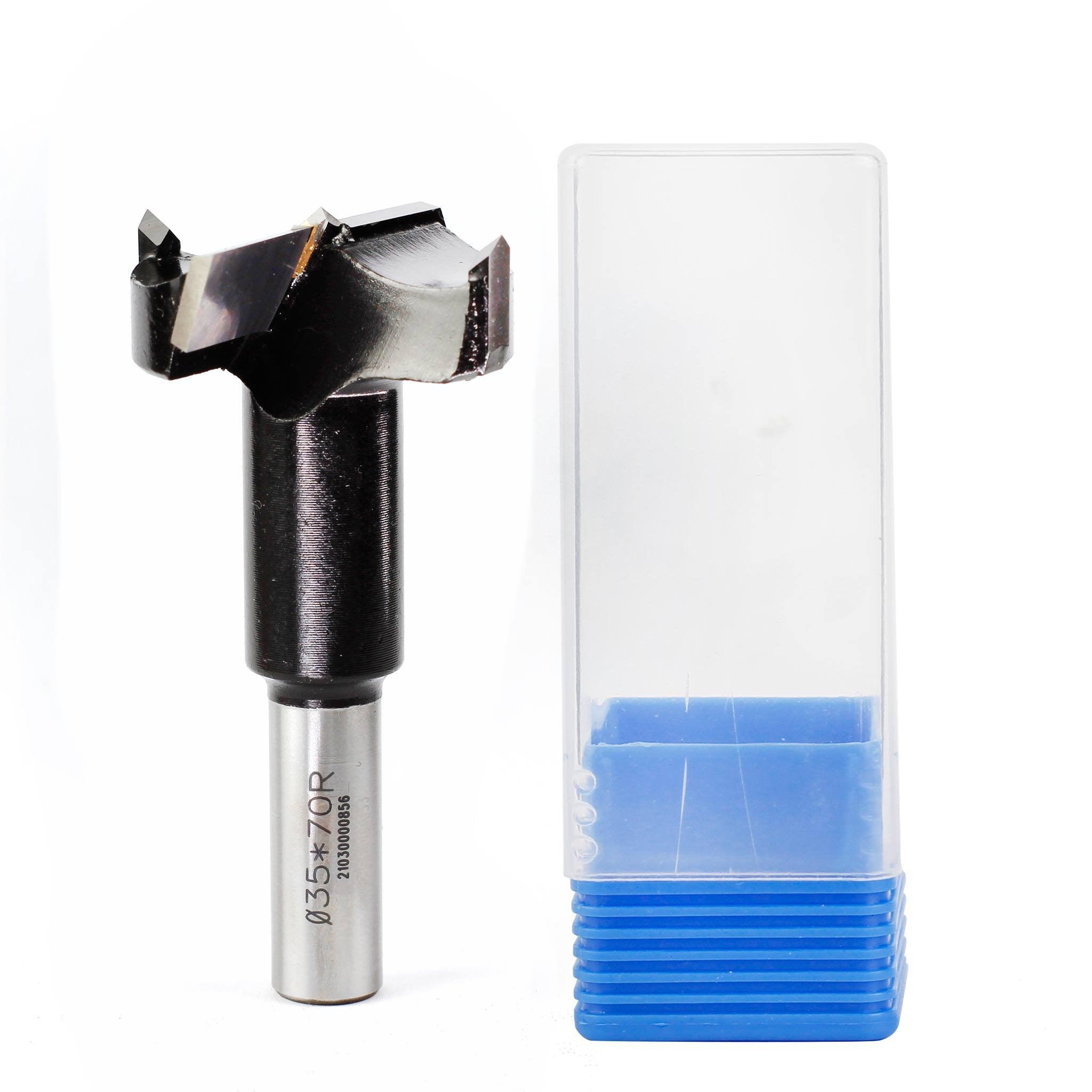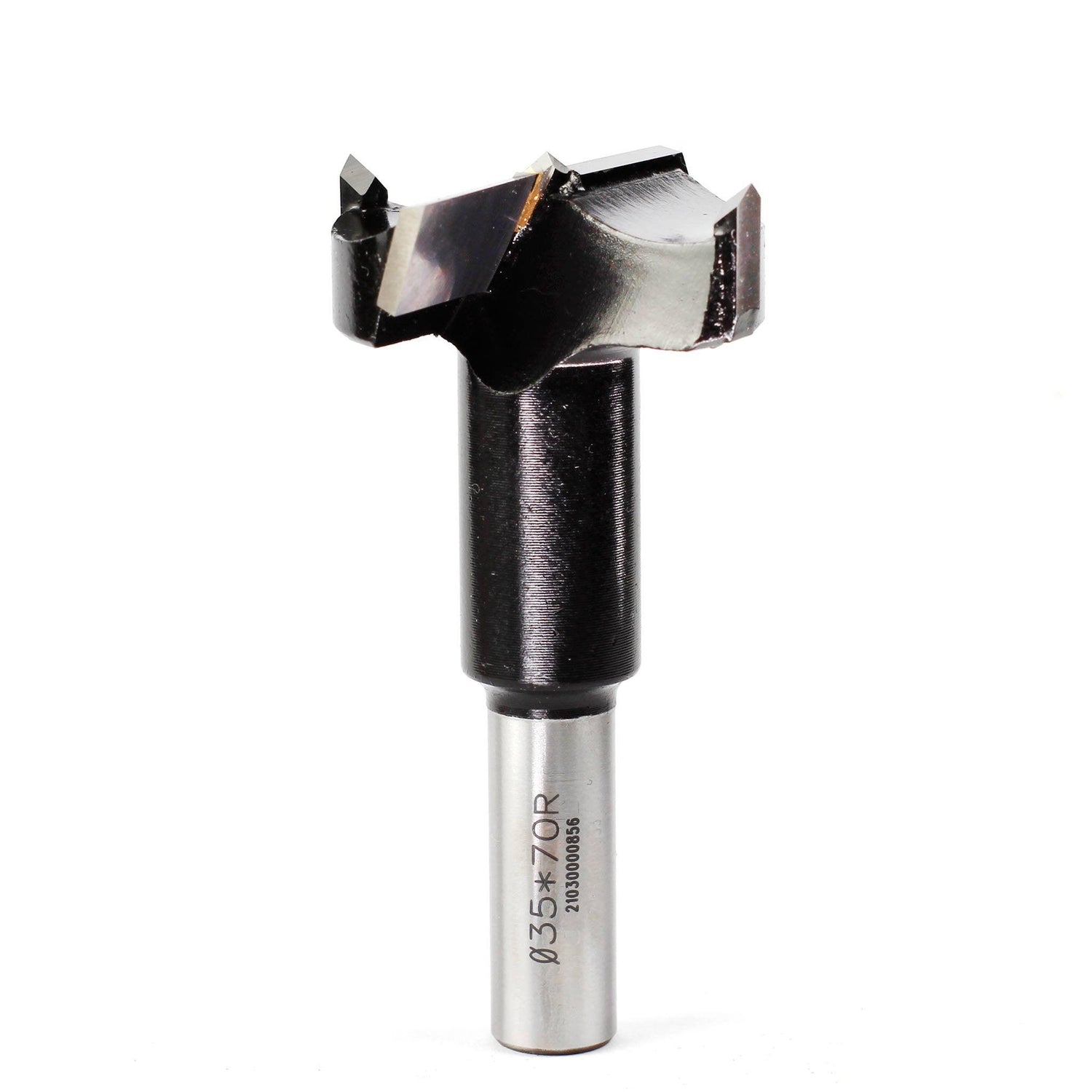 Shop for TCT hinge boring bit 35mm Dia. Right Hand to drill smooth-sided and flat-bottomed holes. FindBuyTool hinge cutter drills pocket holes and cabinet hinges on laminates or dimensional lumber with cleanest finish. This door hinge cutter can be used on both handheld drill and drill press.
