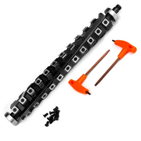 This 4-row helical cutterhead will revolutionize the performance of your Cutech Tool 13" planer (thicknesser), providing a noticeably smoother finish, eliminating tear-outs, and significantly reducing the noise level.