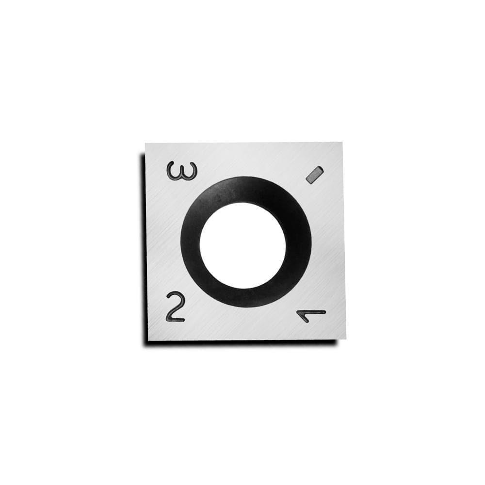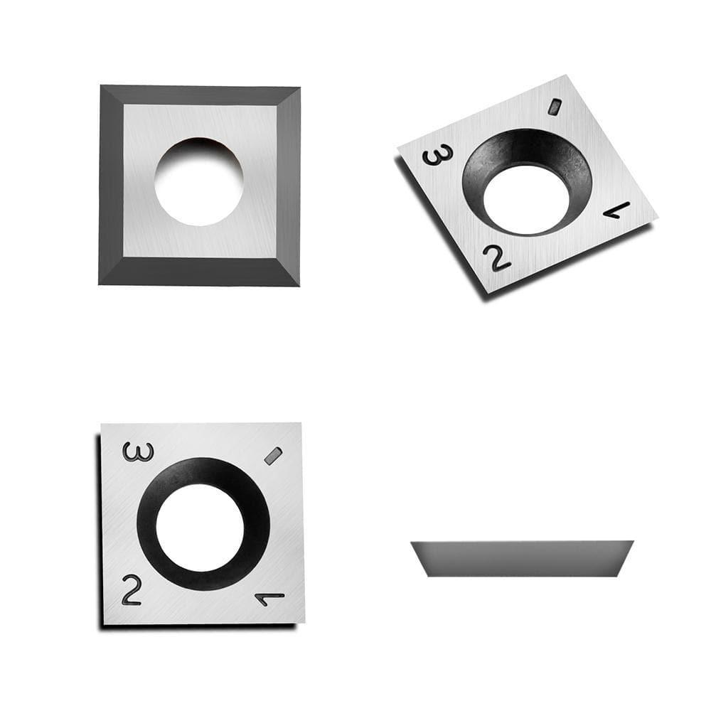 The indexable carbide insert knife is used on thickness planers or jointers with helical spiral cutter heads. This carbide insert measures 14.3x14.3x2.5mm with 4 cutting edges - if you need 14.3x14x2.0mm carbide blades with 2 cutting edges, please click here.