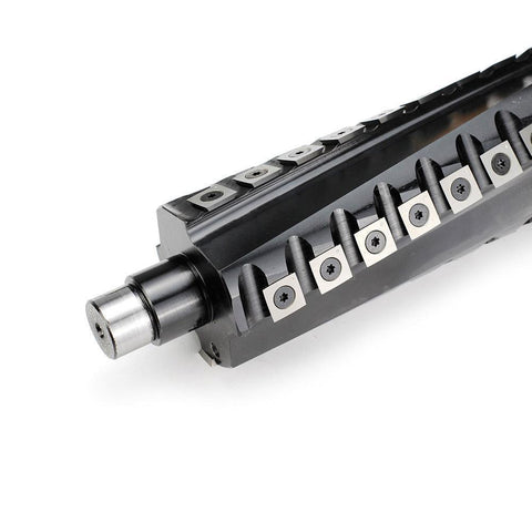 This helical cutterhead is compatible with 15x15x2.5mm-30°-R150 carbide insert knives.